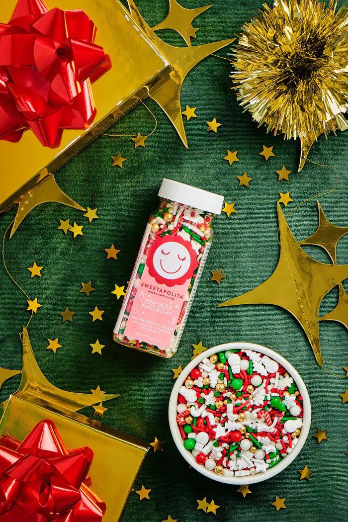 ¡Dale un toque de brillo y diversión a tus dulces navideños con la Mezcla de Chispas Holi-Glitz Deluxe! Esta vibrante mezcla presenta formas deslumbrantes, brillantina y una variedad de chispitas de colores que realzan al instante tus cupcakes, galletas y más. ¡Perfecta para celebrar cualquier ocasión con un toque de magia y diversión!